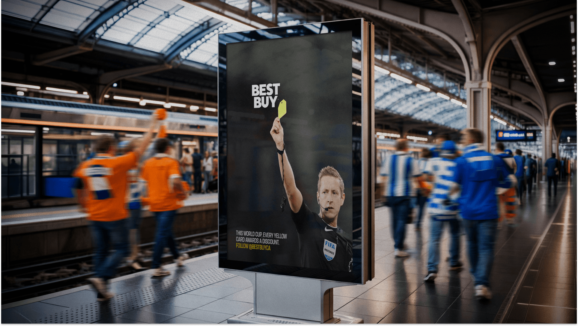Best Buy turns every World Cup yellow card into an instant social coupon, transforming one of football’s most emotional moments into a trigger for tech deals and making the brand culturally relevant again.